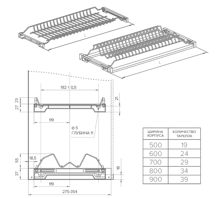 Глубина установки, мм - 275