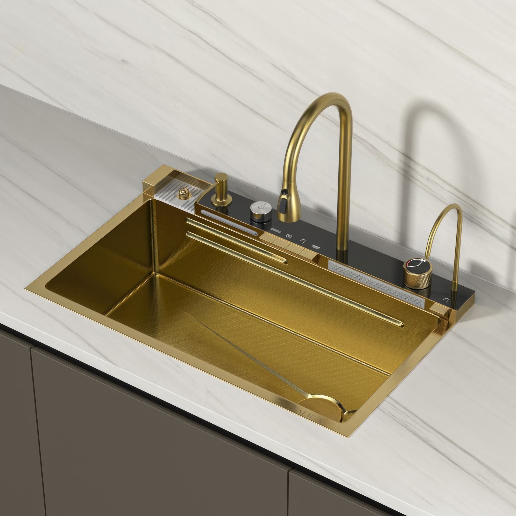 —Мойка функциональная Italica 75*46 см 4 клавиши 304 сталь Золото