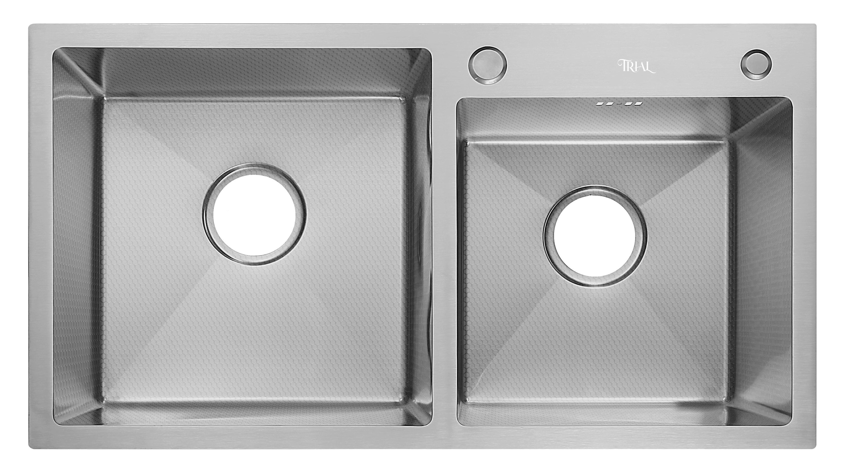 Мойка врезная Trial 78*43 см 1,5 чаши Сатин покрытие соты 201 сталь (с сифоном, дозатором, коландеро
