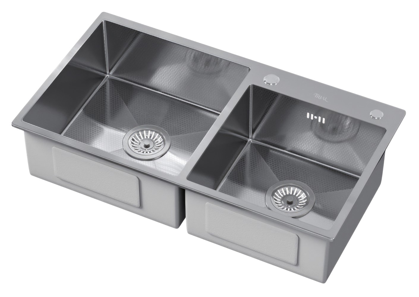 —Мойка врезная Trial 78*43 см 1,5 чаши Сатин покрытие соты 201 сталь (с сифоном, дозатором, коландеро