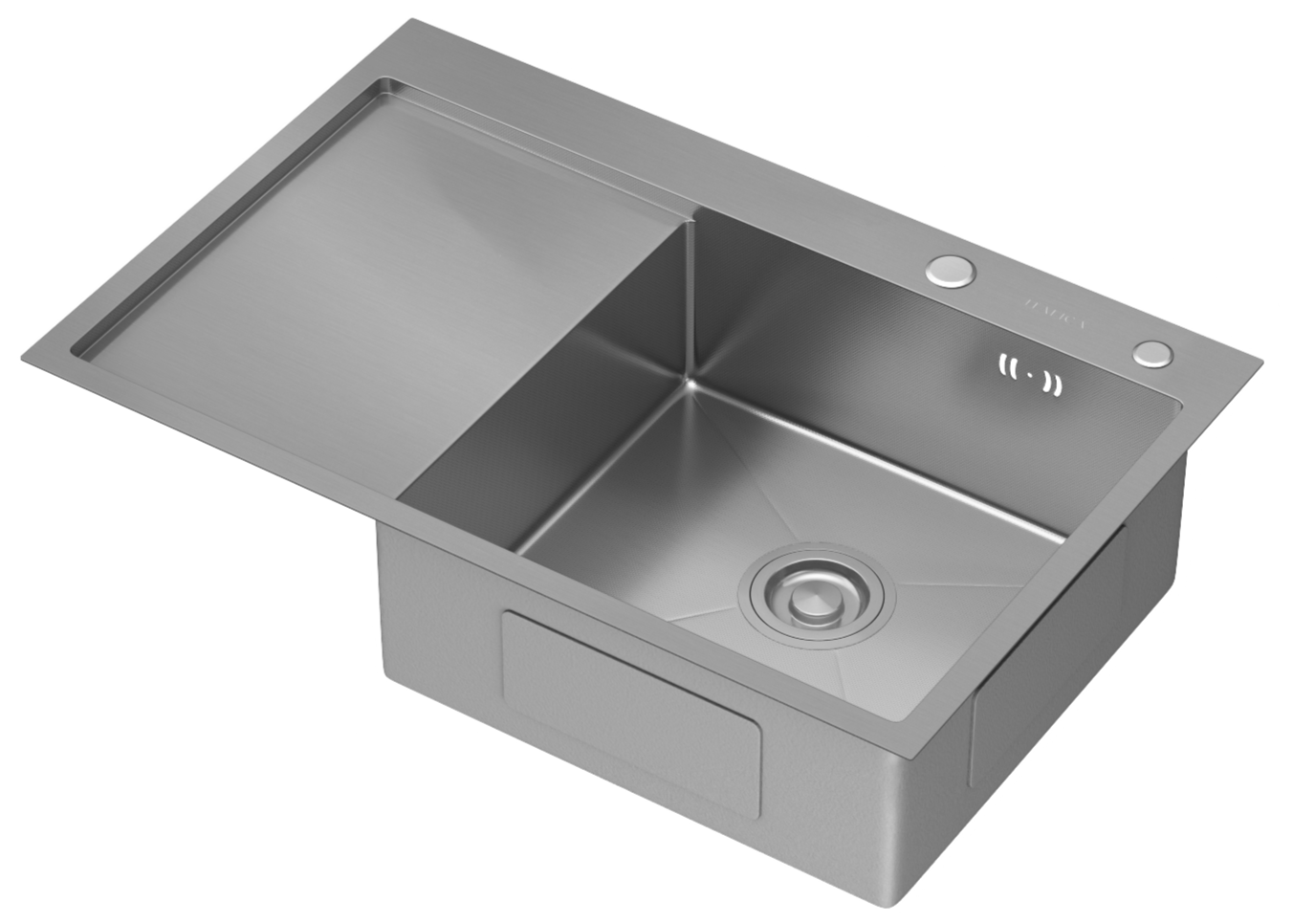 Мойка врезная Italica 78*51 см с крылом Сатин правая Ультра покрытие 304 сталь (сифон, дозатор)
