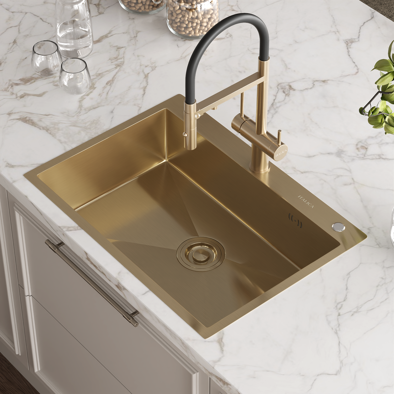 —Мойка врезная Italica 70*50 см Золото 304 сталь (с сифоном, дозатором)