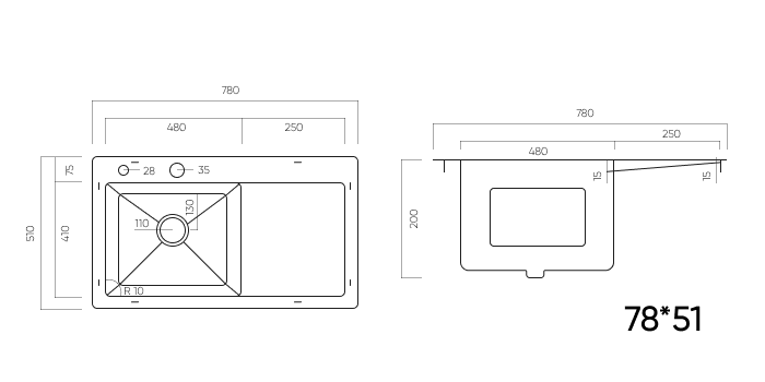 длина 780 мм x ширина 510 мм x глубина 220 мм