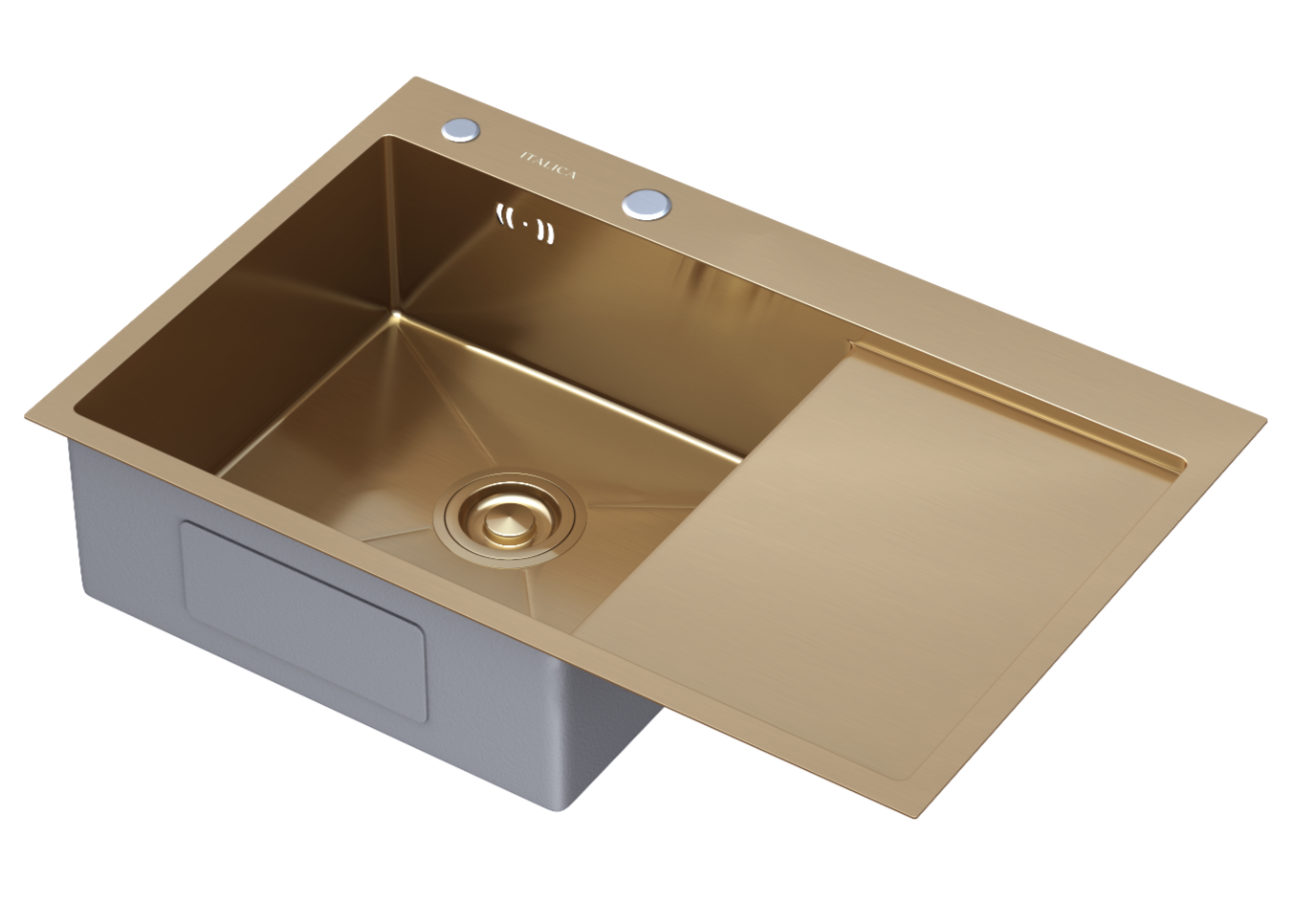 Мойка врезная Italica 78*51 см с крылом Золото левая 304 сталь (с сифоном, дозатором)