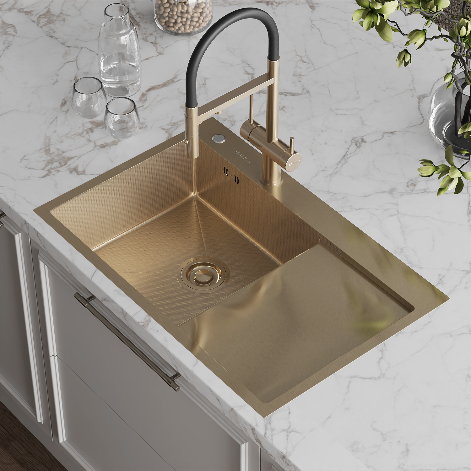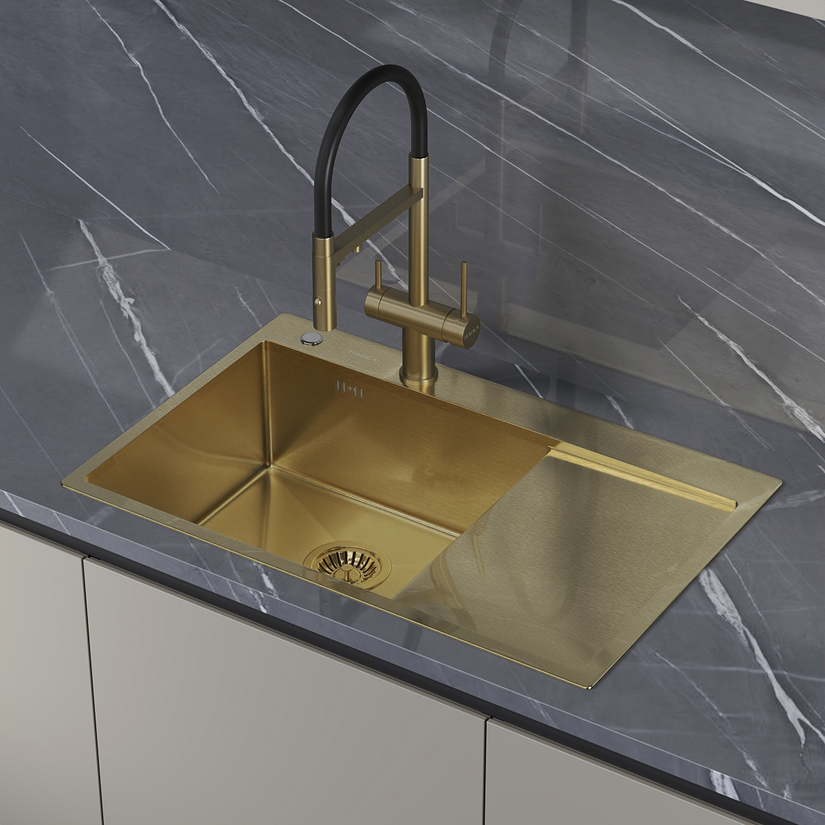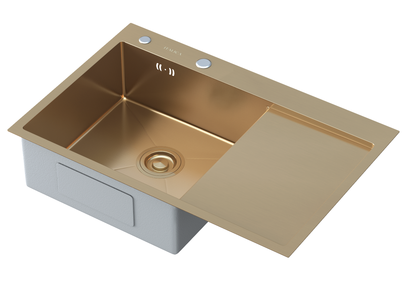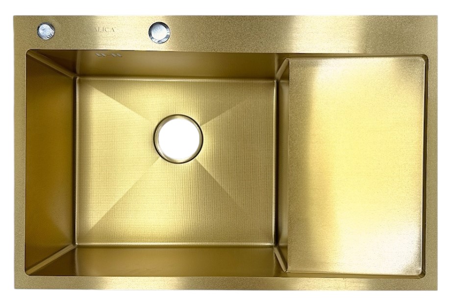 Мойка врезная Italica 78*51 см с крылом Золото левая Ультра покрытие 304 сталь (сифон, дозатор)