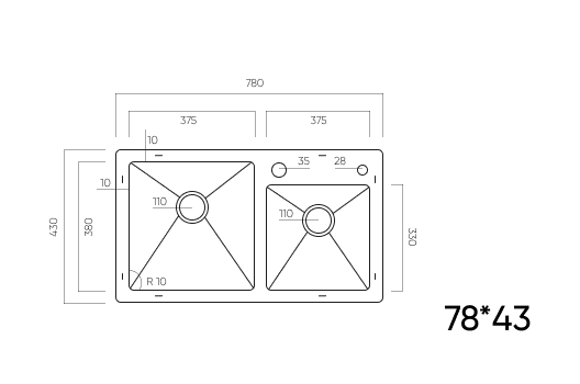 длина 780 мм x ширина 430 мм x глубина 220 мм