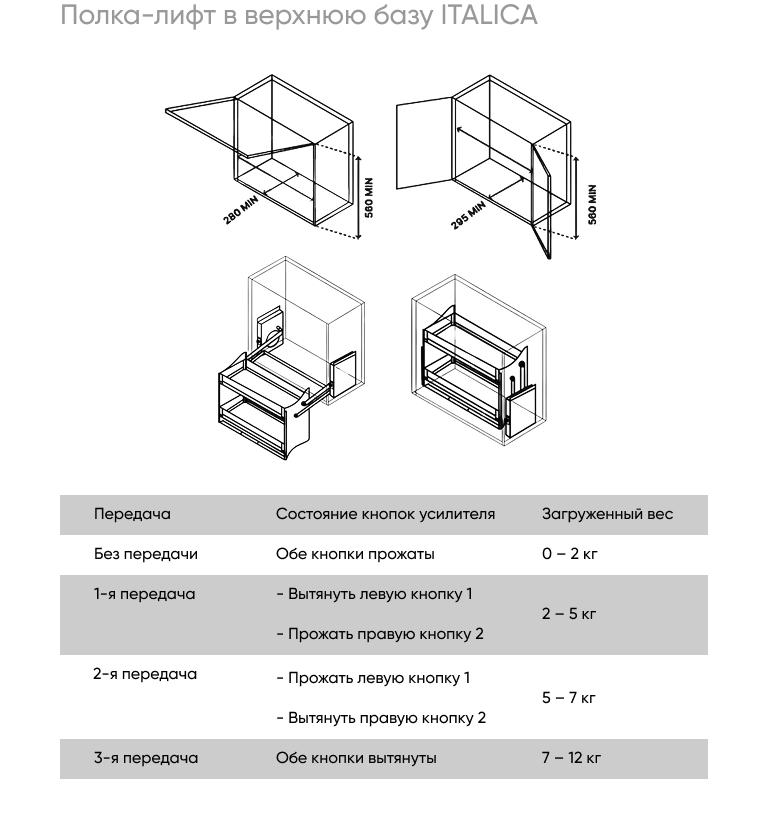 Полка-лифт в верхнюю базу 600 мм стеклянная Italica
