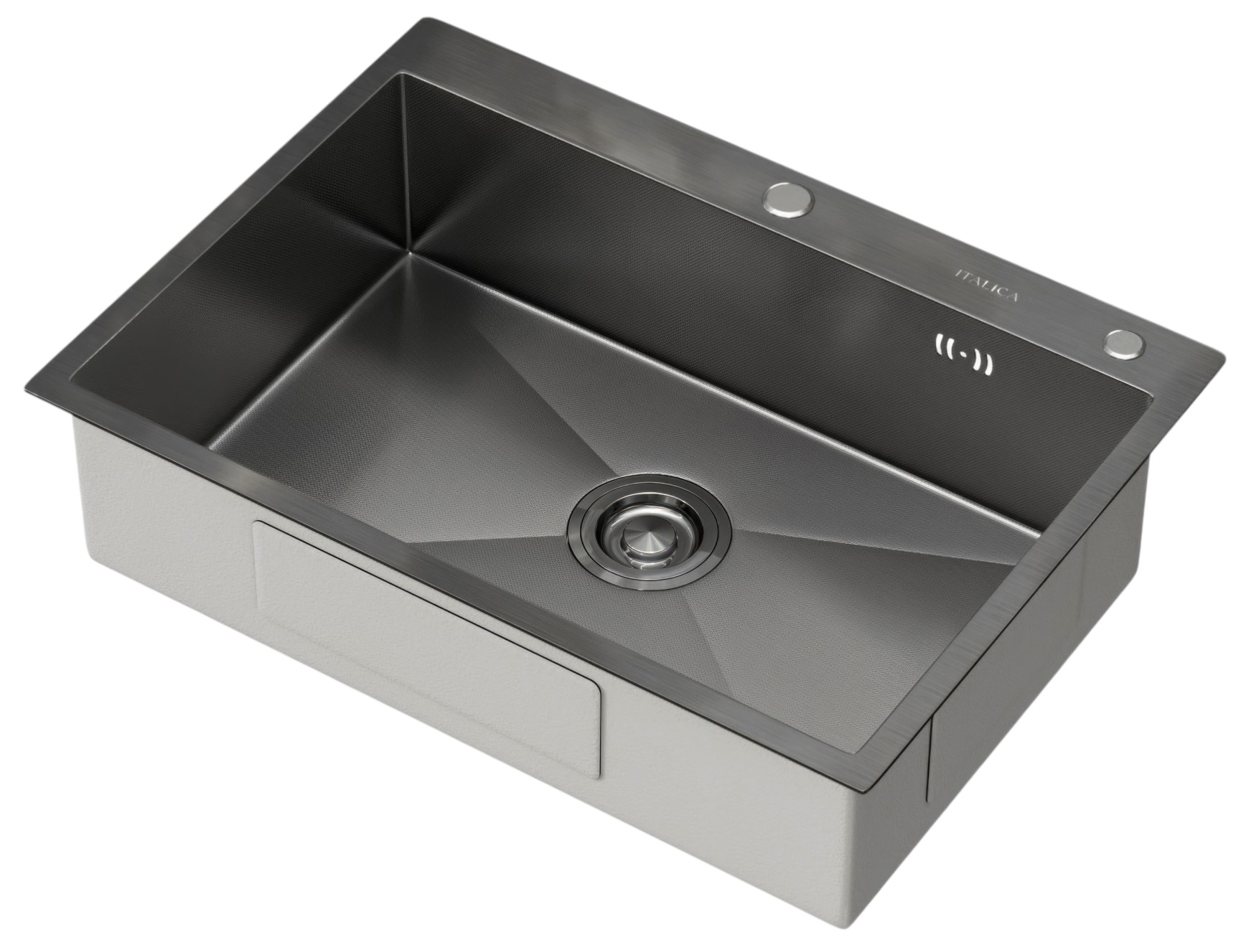 Мойка врезная Italica 70*50 см Графит Ультра покрытие 304 сталь (с сифоном, дозатором)