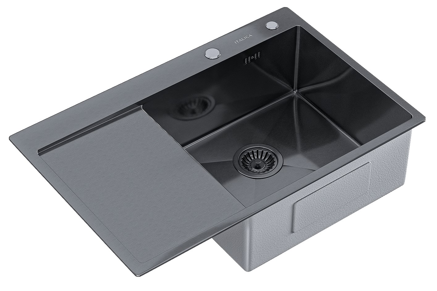 Мойка врезная Italica 78*51 см с крылом Графит правая 304 сталь (с сифоном, дозатором)