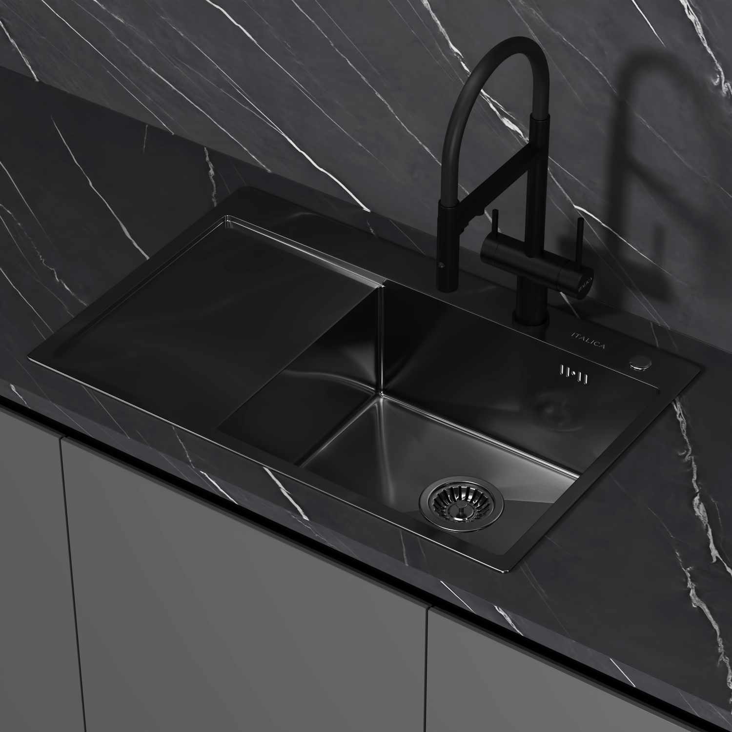 —Мойка врезная Italica 78*51 см с крылом Графит правая 304 сталь (с сифоном, дозатором)
