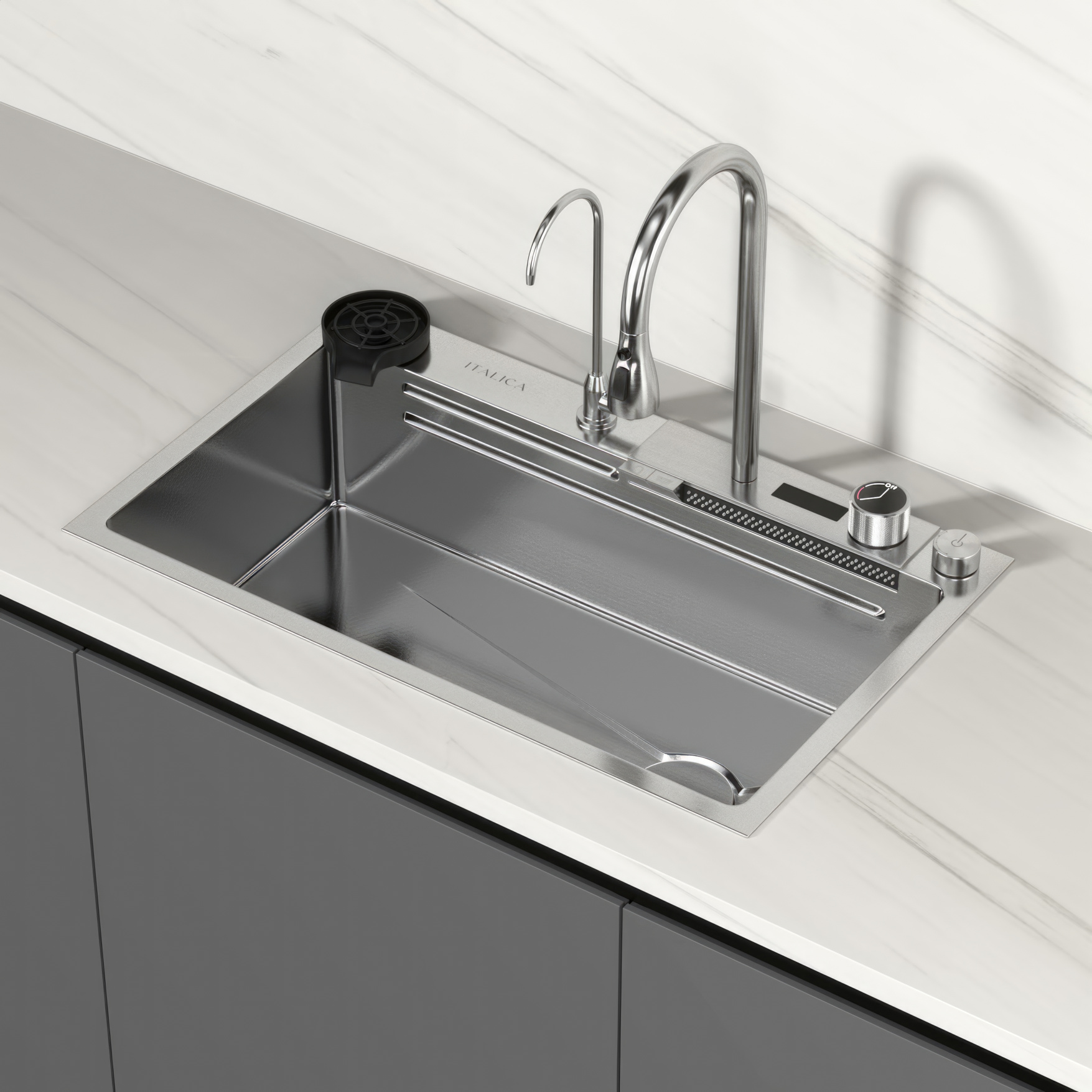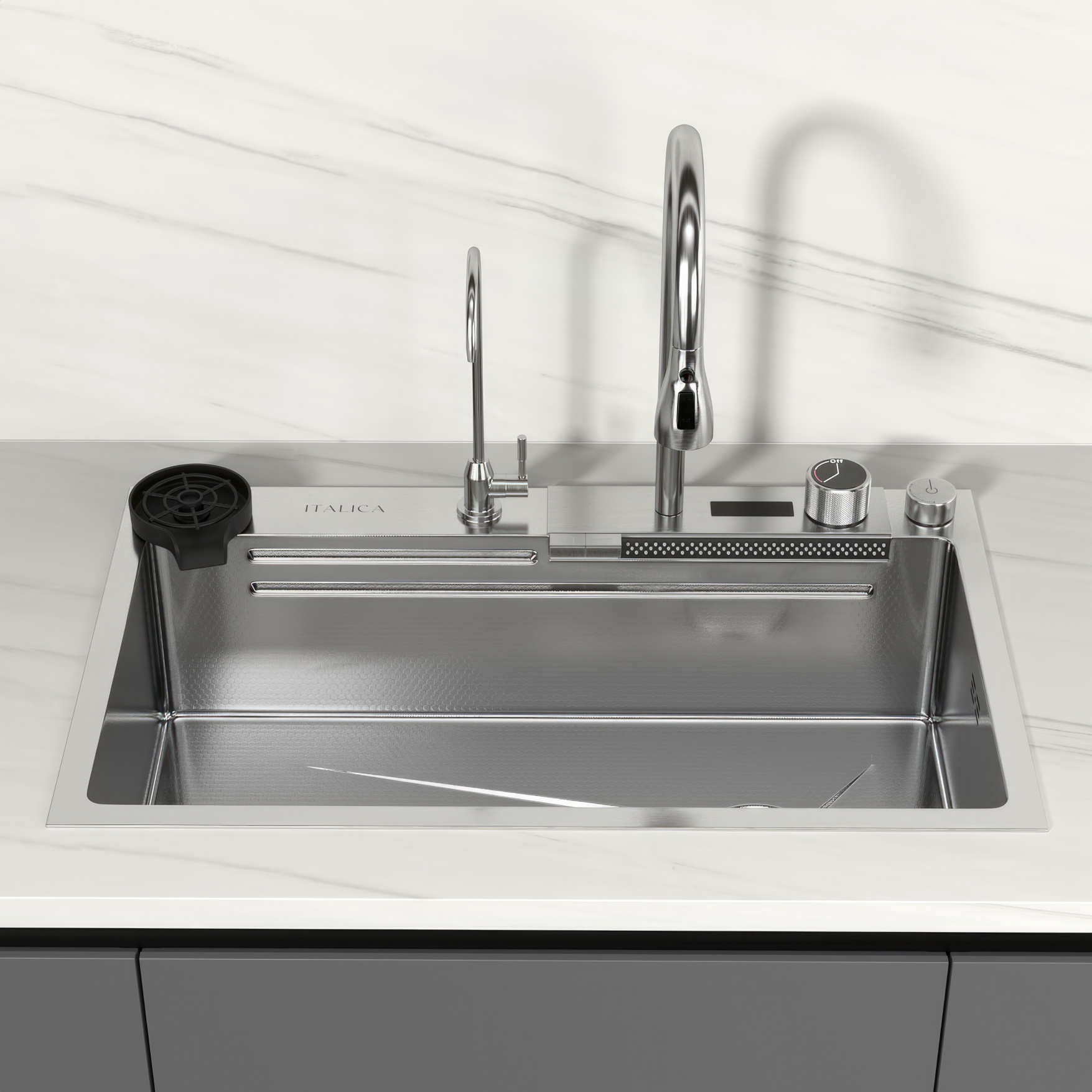 Мойка функциональная Italica 75*46 см 2 клавиши 304 сталь Сатин