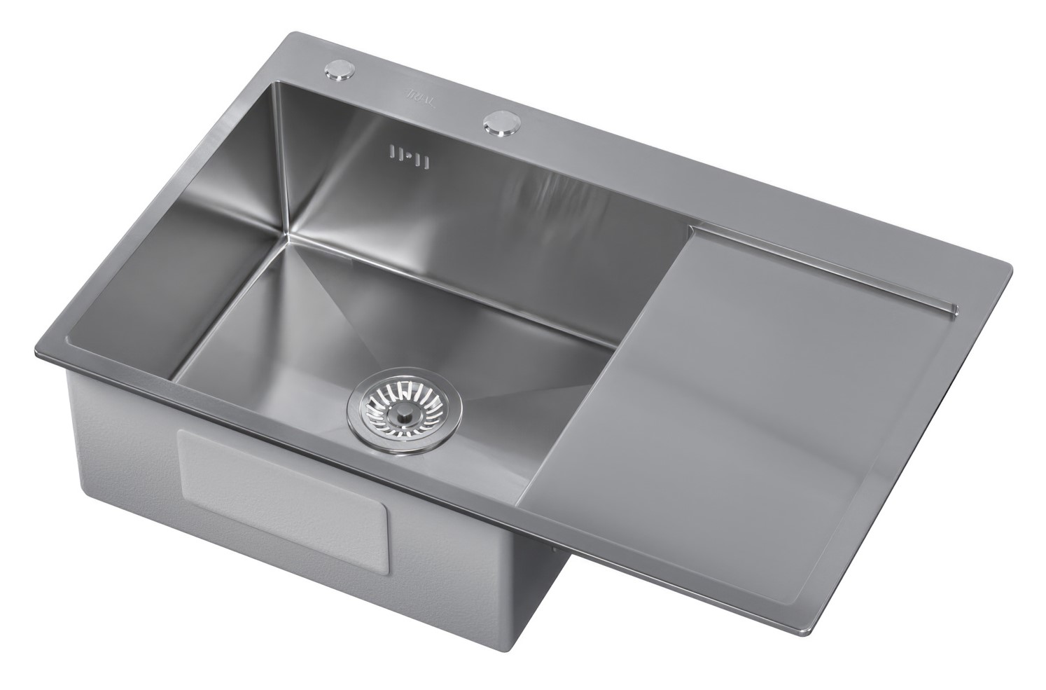 —Мойка врезная Trial 78*51 см с крылом Сатин 201 сталь (с сифоном, дозатором)