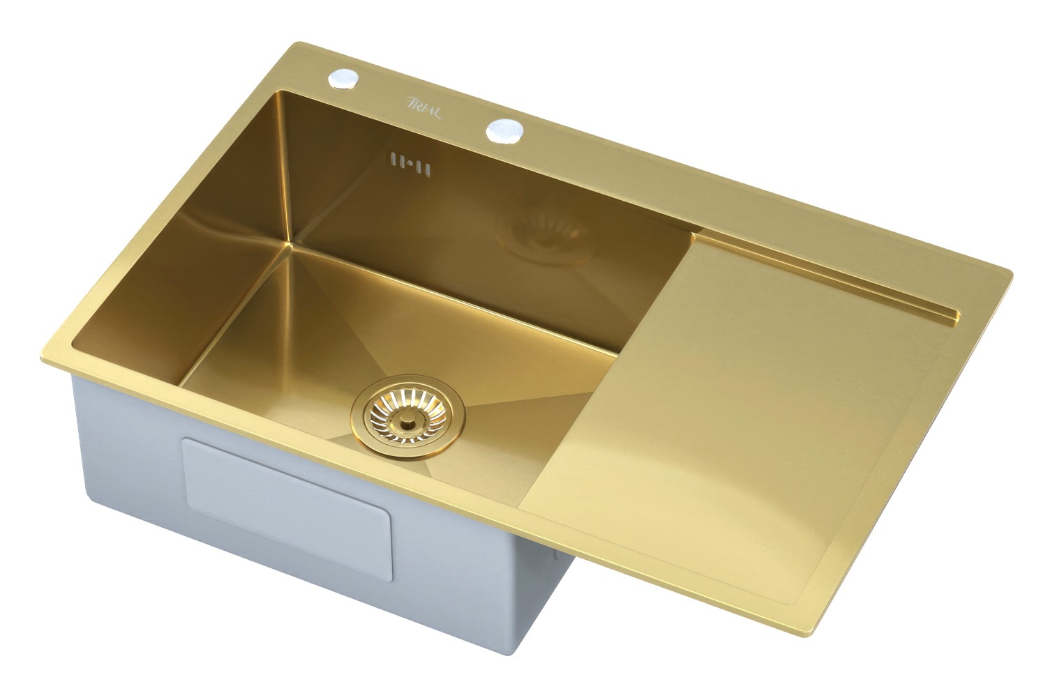 —Мойка врезная Trial 78*51 см с крылом Золото 201 сталь (с сифоном, дозатором)