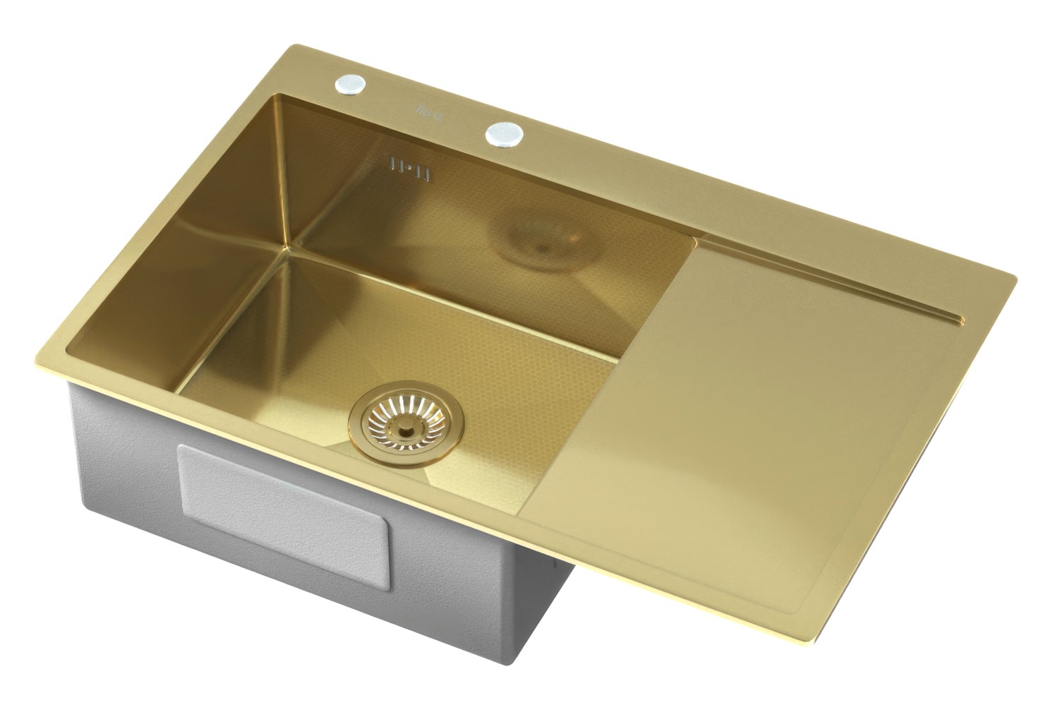 —Мойка врезная Trial 78*51 см с крылом Золото покрытие соты 201 сталь (с сифоном, дозатором, коландер
