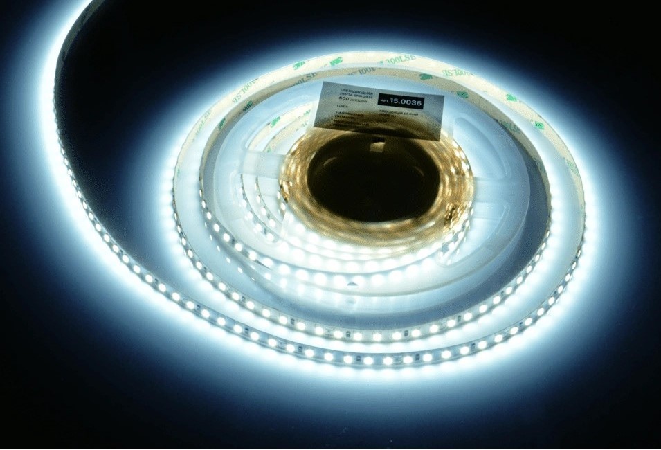 —Лента светодиодная, 600 LED, 24V, 48W/5м, 8 мм, холодный белый, AQ