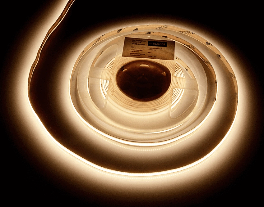 —Лента светодиодная COB 480 LED/м 12V 14W/м 8 мм IP20 теплый белый 5 м, AQ